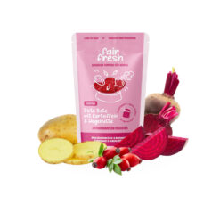 Για έναν μεσαίου μεγέθους σκύλο βάρους 25 κιλών, προσθέστε μισό σακουλάκι Topping της Fair & Fresh (100 γρ.) την ημέρα σε μια πλήρη και ισορροπημένη τροφή.