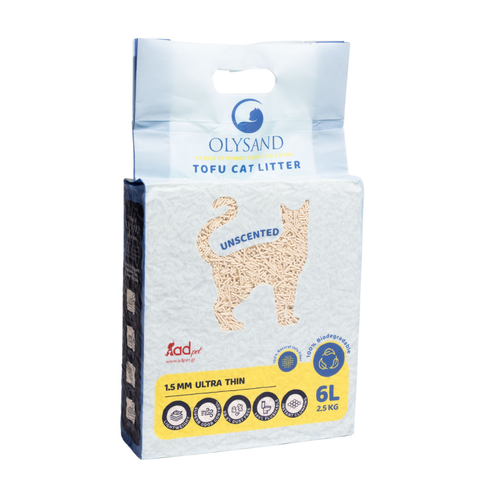 Η άμμος υγιεινής τόφου της Olysand με φυσικό άρωμα έχει πολύ ψιλό κόκκο (1,5 mm) από τόφου, ιδανική για οικολογικά ευαισθητοποιημένους ιδιοκτήτες γατών. Προσφέρει άριστη απορρόφηση υγρών, δέσμευση δυσάρεστων οσμών, τέλεια και άμεση συγκόλληση σβόλων.